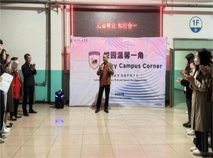 最后,束光辉院长在讲话中对章校长亲临现场指导表示衷心的感谢,也对到场的所有同学表示欢迎。他表示英语角将作为系列活动持续为学生提供沟通交流、互助学习的平台,希望更多的沧交师生参与到英语角活动中来。