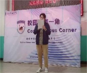 校长章梓茂对本次“英语角”的系列活动予以充分肯定,并结合自身经验向大家提出几点建议:一是大学生要敢于说英语,不要被英语语法所束缚;二是鼓励大家要充分地利用各种渠道学习英语,不要局限在课堂之上;三是要以英语为工具,积极交流,拓宽视野。