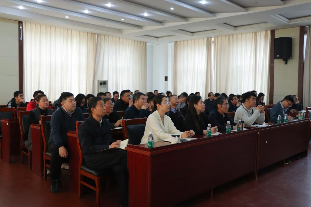 党课伊始,庞书记深刻阐释了习近平法治思想的核心要义与理论渊源,并引经据典,集百家之长、汇百家之智,系统梳理了中国传统哲学中的组织治理思想。接着,庞书记结合长期的工作实践和丰富的管理经验,以河北科技大学后勤集团组织治理为案例,从治理体系中的管理机制建设、组织文化建设、运行机制建设等多个方面,进行了深入交流和工作分享。最后,立足我校发展现状和工作实际,研究分析了民办高校治理体系和治理能力现代化的实现路径,对学校各项事业发展提供了一些建设性的意见建议。